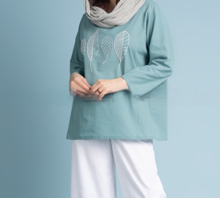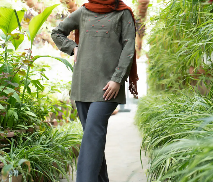 شومیز مانتویی الیاف طبیعی گلدوزی شده مدل آتریسا