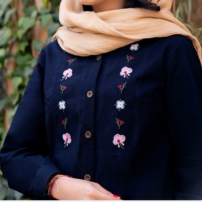 شومیز مانتویی گلدوزی شده مدل مهتا جنس نخی الیاف طبیعی رنگ آبی کم رنگ، سرمه ای، صورتی، سبز دریایی و سبز تیره در سه سایز شومیز مهتا بدون آبرفت قواره کارها متفاوته. جهت اطمینان از سایز درست، حتماً عرض سینه یکی از مانتوهای خودتون را اندازه بگیرید و ضربدر دو کنید، سپس با جدول راهنمای سایز در عکس آخر مقایسه کنید. نحوه شستشو: به صورت پشت و رو داخل ماشین لباسشویی بیندازید و با آب سرد بشویید. برای شستشو از شویندههای آنزیمدار استفاده نکنید. خشککن و اتوی ملایم آسیبی به لباس نمیزند. اتو را مستقیم روی قسمتهای چاپی نگذارید.