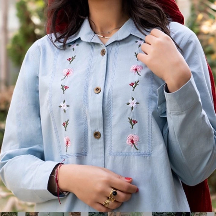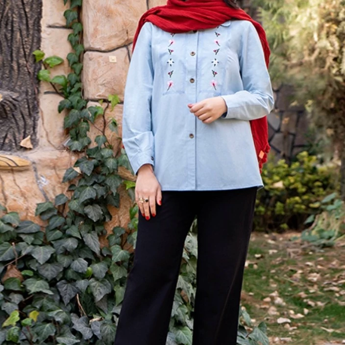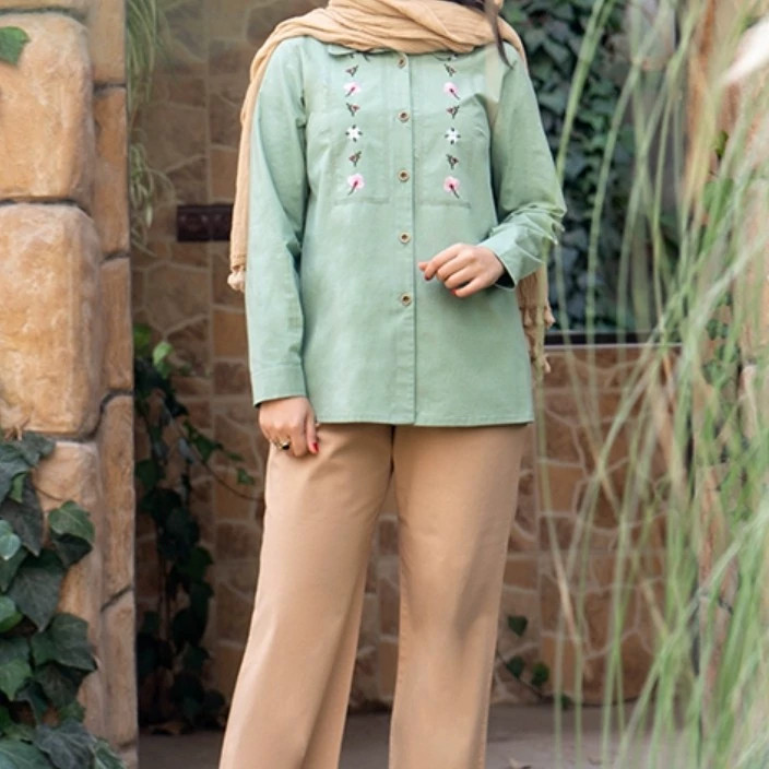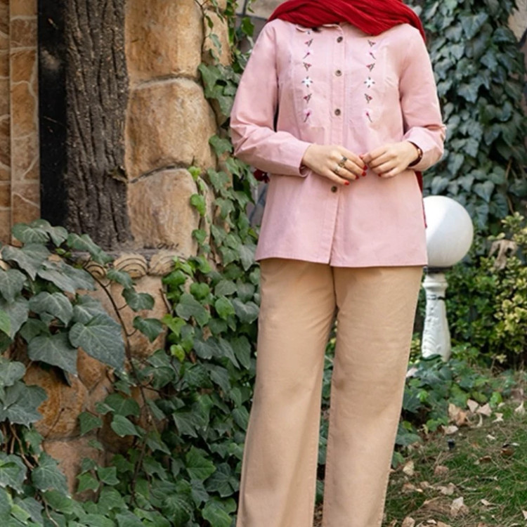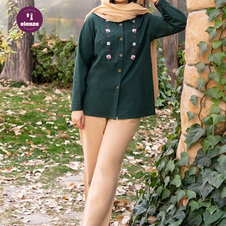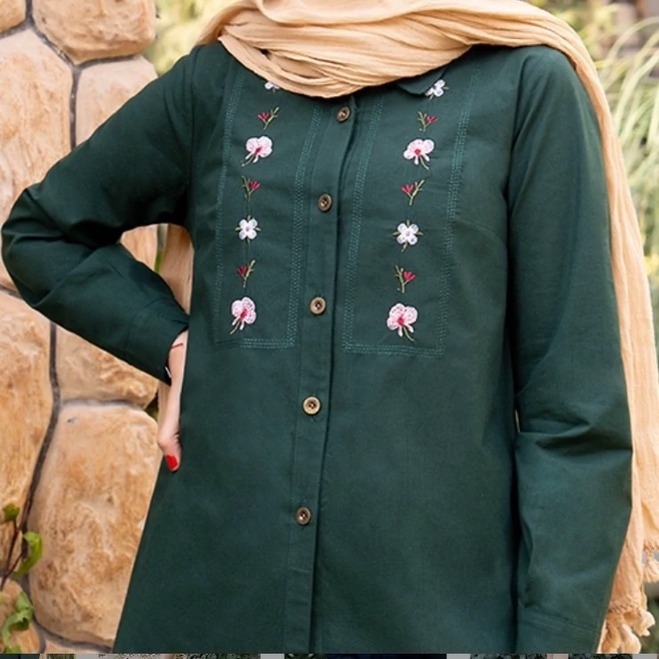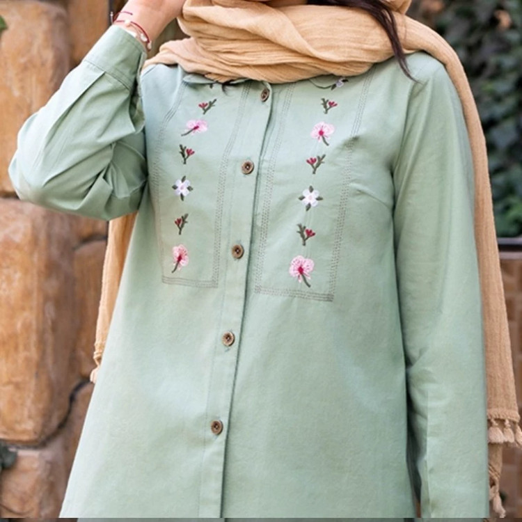 مانتو شومیزی کوتاه نخی گلدوزی شده مدل مهتا