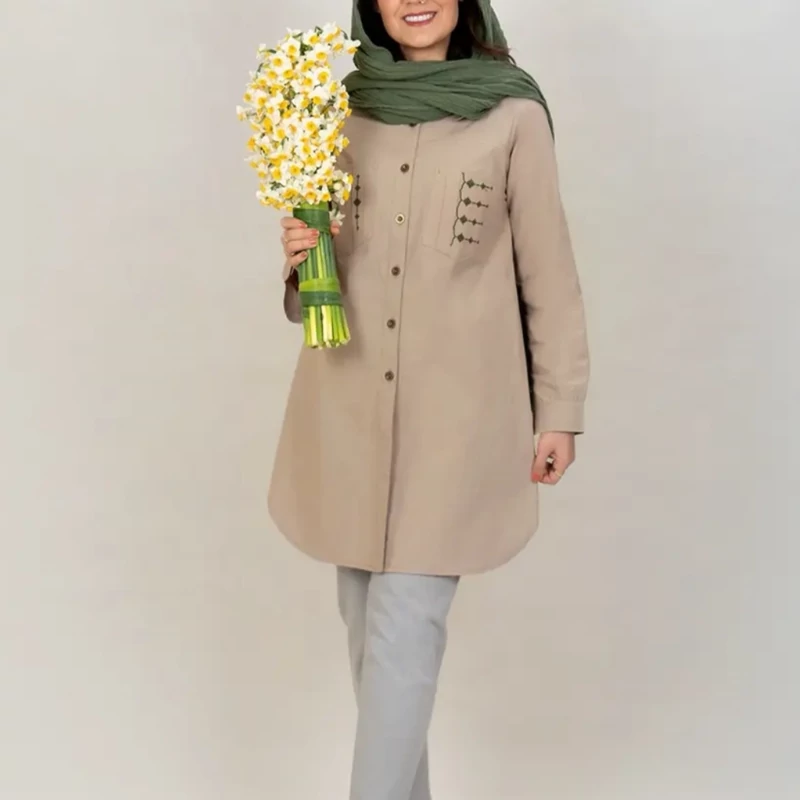 مانتو الیاف طبیعی گلدوزی شده اسپرت مدل پیونی