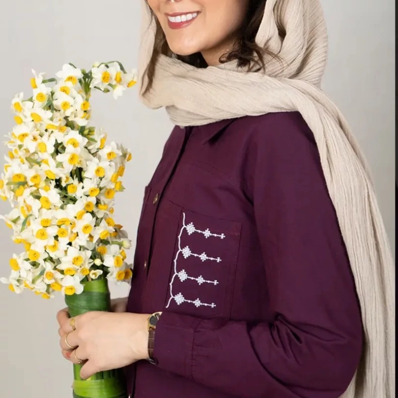 مانتو اسپرت الیاف طبیعی گلدوزی شده مدل پیونی
