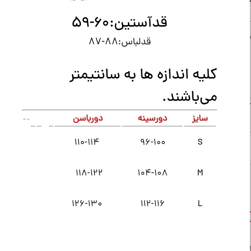 قواره کارها متفاوته. جهت اطمینان از سایز درست، حتماً عرض سینه یکی از مانتوهای خودتون رو اندازه بگیرید و ضربدر دو کنید تا دور سینه به دست بیاد، سپس با جدول راهنمای سایز در عکس آخر مقایسه کنید.