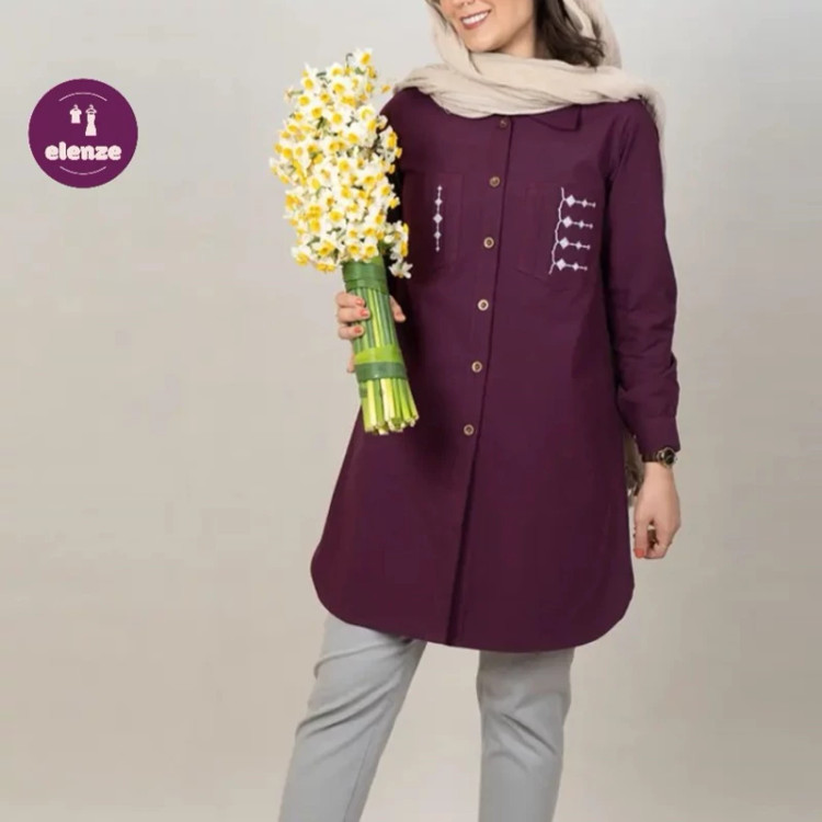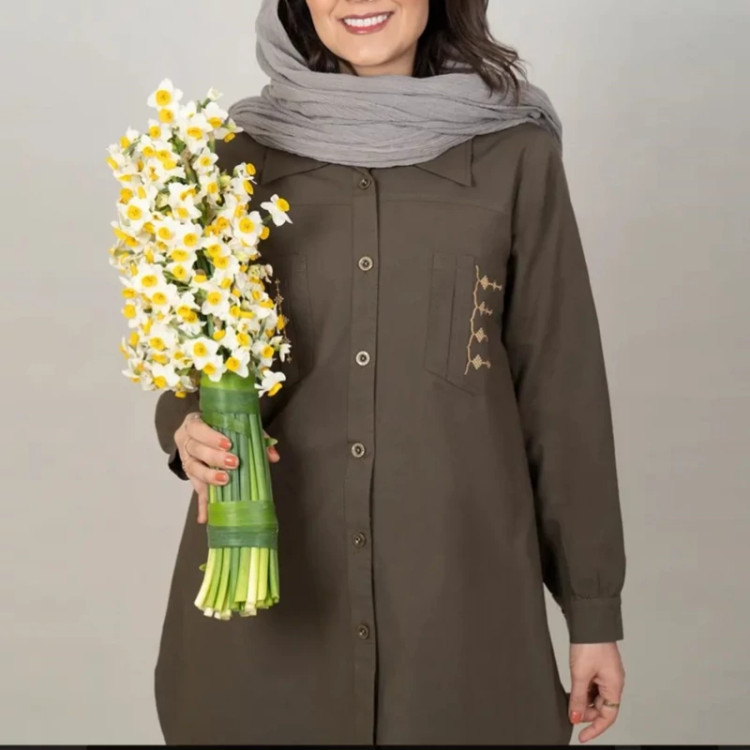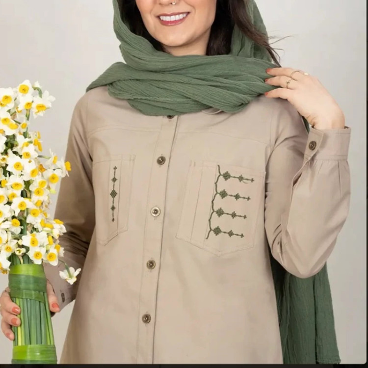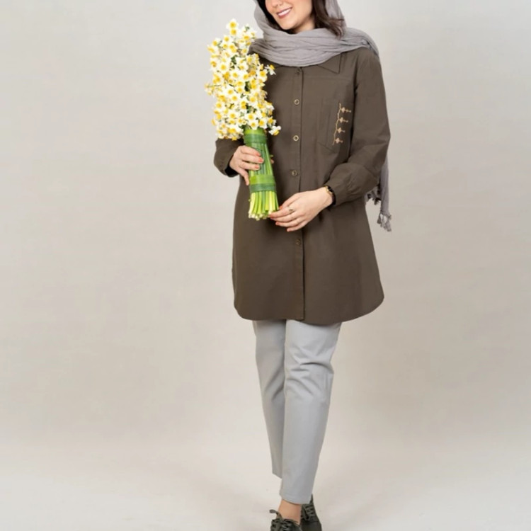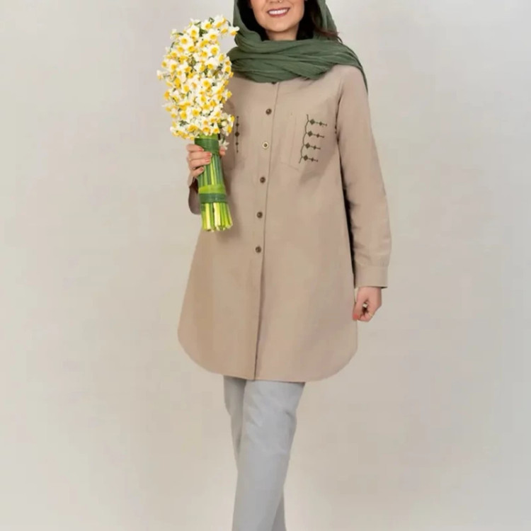 مانتو اسپرت الیاف طبیعی گلدوزی شده مدل پیونی