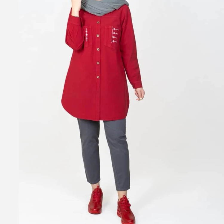 مانتو الیاف طبیعی گلدوزی شده اسپرت مدل پیونی رنگ سرمه ای، سبز، کرم و قرمز شومیز بلند پیونی آبرفت ندارد. سه سایز قواره کارها متفاوته. جهت اطمینان از سایز درست، حتماً عرض سینه یکی از مانتوهای خودتون رو اندازه بگیرید و ضربدر دو کنید تا دور سینه به دست بیاد، سپس با جدول راهنمای سایز در عکس آخر مقایسه کنید. قبل از ثبت سفارش از موجودی رنگ و سایز موردنظرتون مطمئن شوید. نحوه شستشو: به صورت پشت و رو داخل ماشین لباسشویی بیندازید و با آب سرد بشویید. برای شستشو از شویندههای آنزیمدار استفاده نکنید. خشککن و اتوی ملایم آسیبی به لباس نمیزند. اتو را مستقیم روی قسمتهای چاپی نگذارید.
