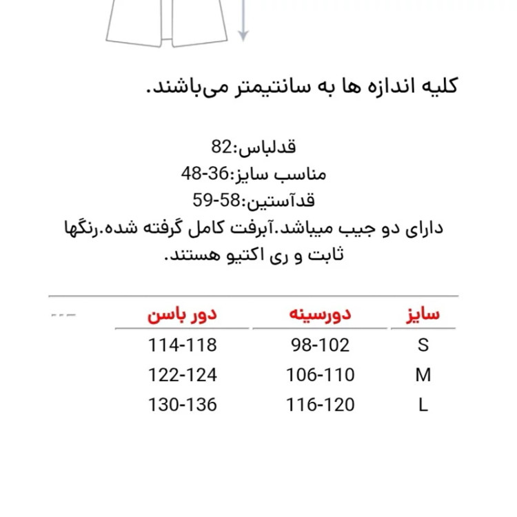 مانتو نخی الیاف طبیعی مدل گلشن قواره بزرگ مانتو عیدانه رنگ مشکی سبز زرشکی صورتی عسلی بدون آبرفت، با گلدوزی زیبا تونیک نخی گلشن دو طرف جیب دارد. سه سایز قواره کارها متفاوته. جهت اطمینان از سایز درست، حتماً عرض سینه یکی از مانتوهای خودتون رو اندازه بگیرید و ضربدر دو کنید، سپس با جدول راهنمای سایز در عکس آخر مقایسه کنید. لطفا قبل از ثبت سفارش از موجودی سایز و رنگ موردنظرتون مطمئن شوید. نحوه شستشو: به صورت پشت و رو داخل ماشین لباسشویی بیندازید و با آب سرد بشویید. برای شستشو از شویندههای آنزیمدار استفاده نکنید. خشککن و اتوی ملایم آسیبی به لباس نمیزند. اتو را مستقیم روی قسمتهای چاپی نگذارید.