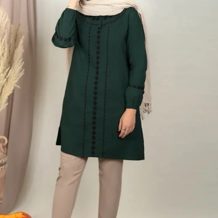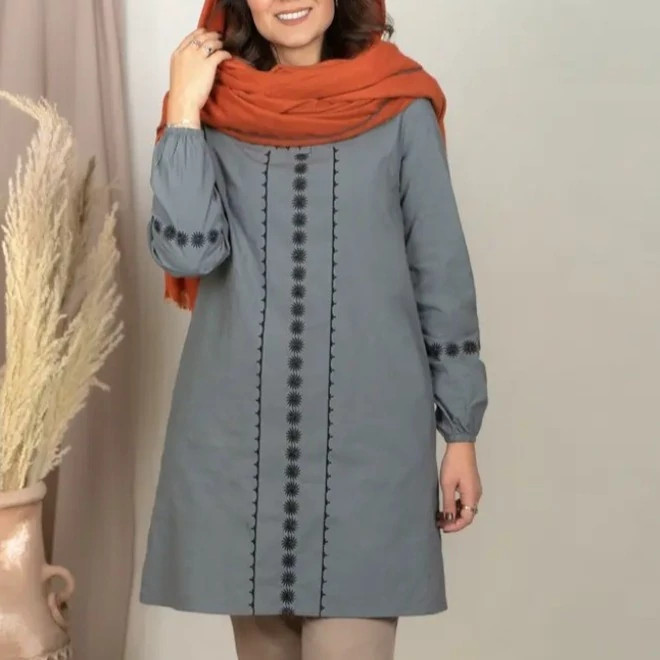 مانتو جلو بسته زنانه تابستانی گلدوزی شده میخک