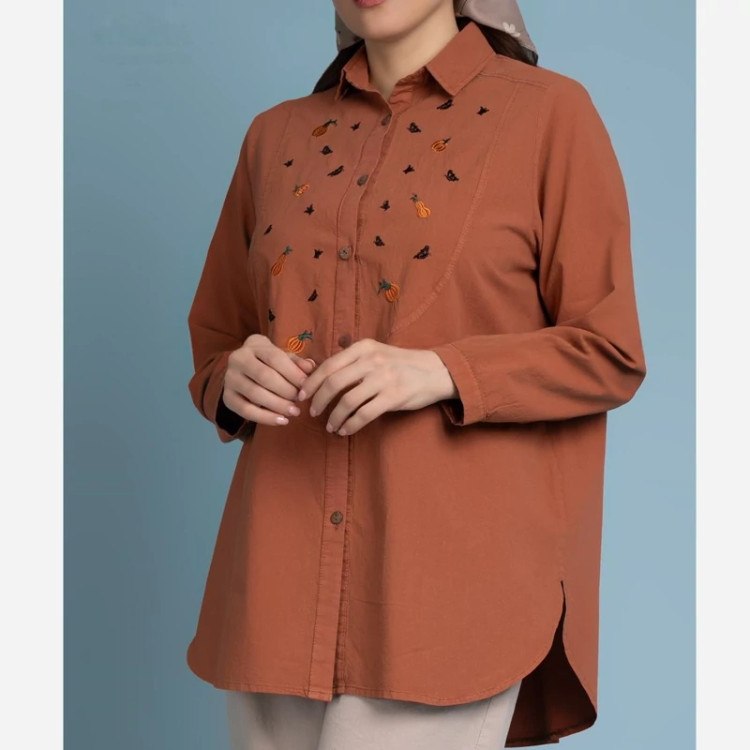 مانتو زنانه کوتاه نخی الیاف طبیعی سایز بزرگ مدل آتریسا رنگ سرمهای: سایز 40، 42 و 44 رنگ بادامی: سایز 44 مانتو شومیزی گلدوزی شده طرح کدو حلوایی بدون آبرفت قد: 75-79 سانتیمتر قواره شومیز آتریسا بزرگ است. جهت اطمینان از سایز درست، حتماً عرض سینه یکی از مانتوهای خودتون را اندازه بگیرید و ضربدر دو کنید، سپس با جدول راهنمای سایز در عکس آخر مقایسه کنید. لطفا قبل از ثبت سفارش از موجودی سایز و رنگ موردنظرتون مطمئن شوید. نحوه شستشو: به صورت پشت و رو داخل ماشین لباسشویی بیندازید و با آب سرد بشویید. برای شستشو از شویندههای آنزیمدار استفاده نکنید. خشککن و اتوی ملایم آسیبی به لباس نمیزند. اتو را مستقیم روی قسمتهای چاپی نگذارید.