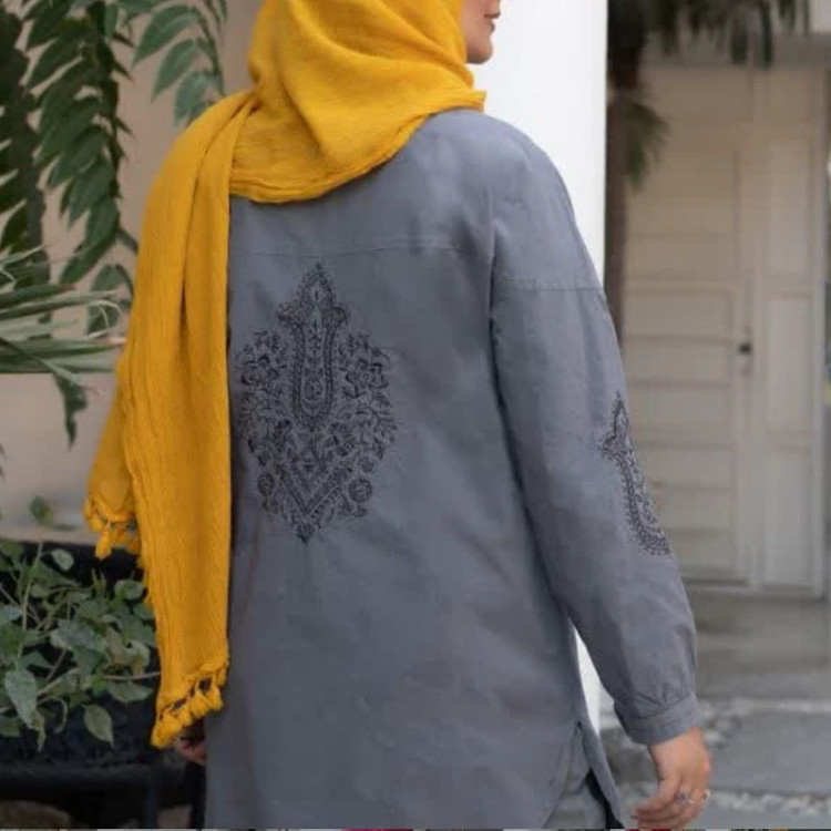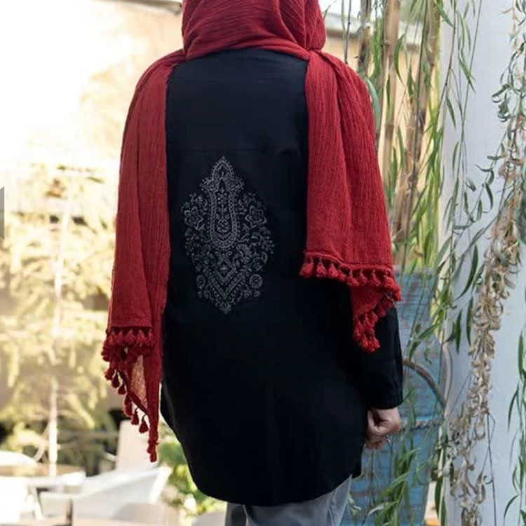 مانتو مشکی نخی الیاف طبیعی گلدوزی شده چیکا