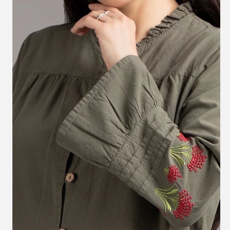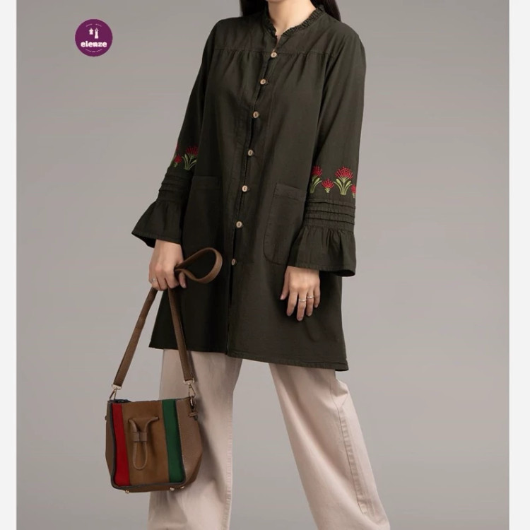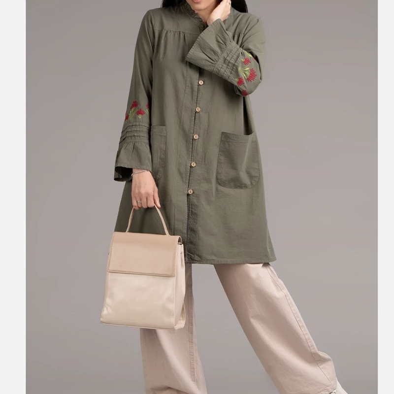 مانتو دانشجویی اسپرت الیاف طبیعی گلدوزی مدل آیلین