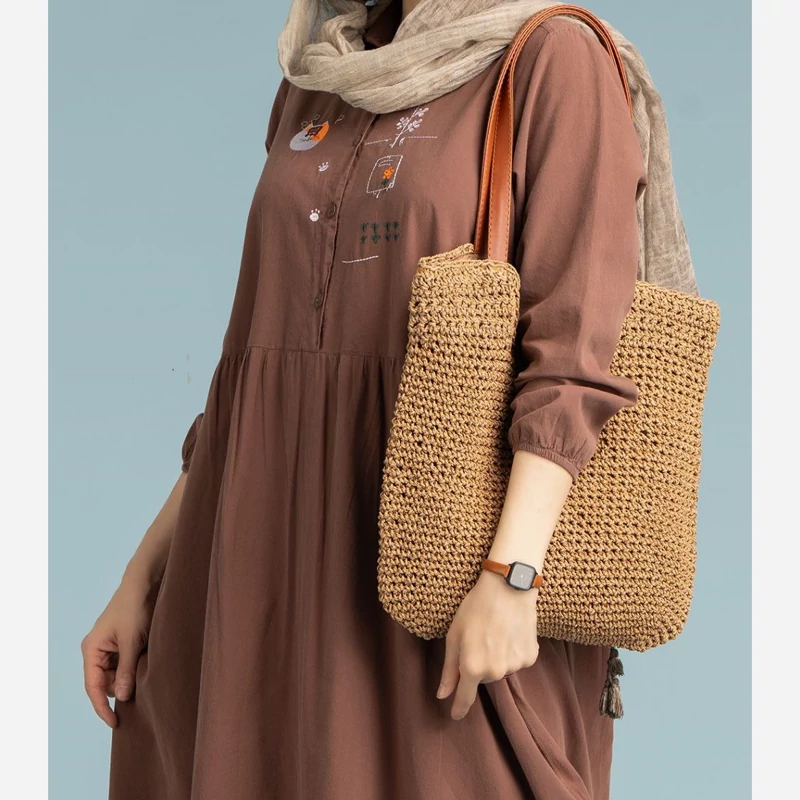 مانتو پیراهنی بلند مدل پریوش پیراهن ساحلی نخی زنانه در سه سایز کفتان سایز بزرگ مانتو تابستانه بلند با گلدوزی بدون آبرفت الیاف طبیعی پنبه (نخ رینگ) قد لباس ~130 قد آستین ~55 سایز 1 دورسینه ~110 سایز 2 دورسینه ~114 سایز 3 دورسینه ~118 جهت اطمینان از سایز، عرض سینه یکی از مانتوهای خودتون رو اندازه بگیرید و ضربدر دو کنید، سپس با راهنمای سایز مقایسه کنید. نحوه شستشو: به صورت پشت و رو داخل ماشین لباسشویی بیندازید و با آب سرد بشویید. برای شستشو از شویندههای آنزیمدار استفاده نکنید. خشککن و اتوی ملایم آسیبی به لباس نمیزند. اتو را مستقیم روی قسمتهای چاپی نگذارید.